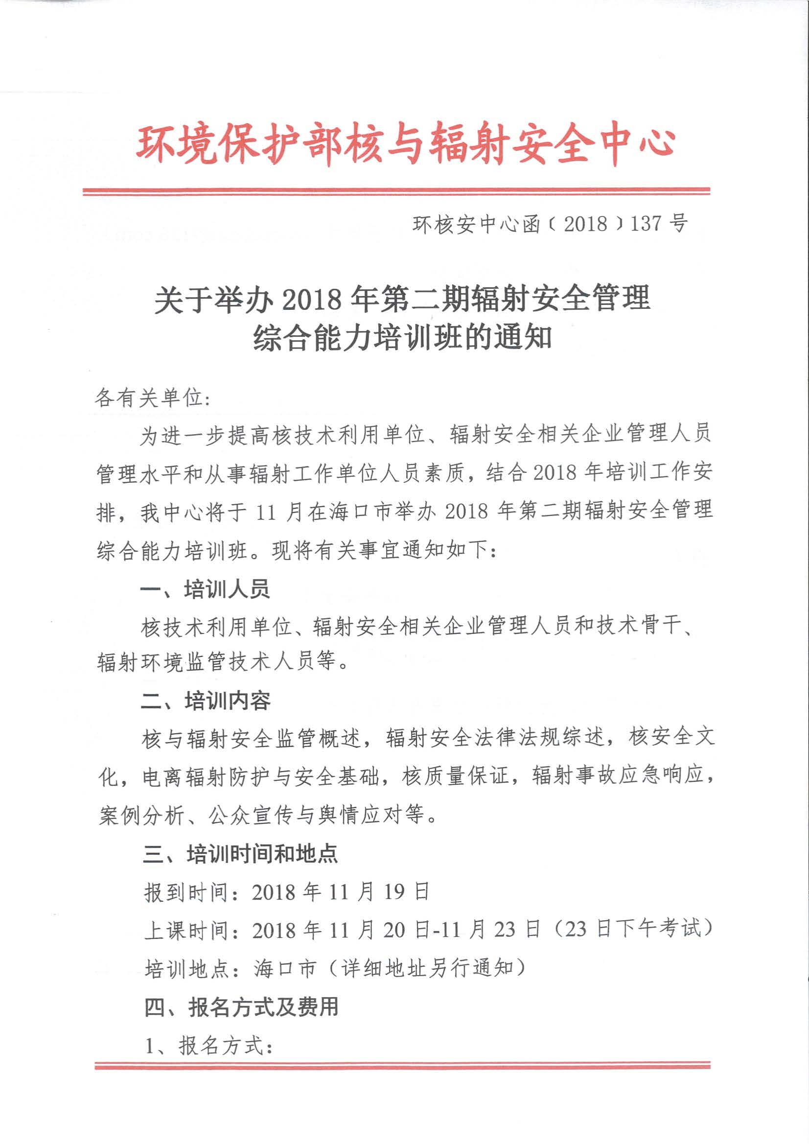 關(guān)于舉辦2018年第二期輻射安全管理綜合能力培訓(xùn)班的通知