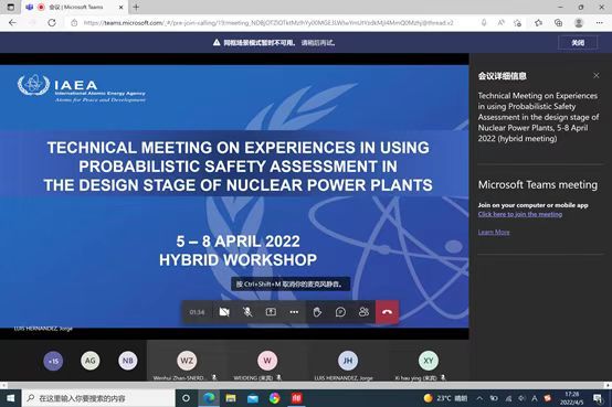 2022年4月5-8日,國際原子能機構(gòu)(IAEA)在奧地利舉辦核電廠概率安全分析(PSA)應(yīng)用的技術(shù)交流會,來自世界各地的成員國代表以現(xiàn)場或網(wǎng)絡(luò)視頻的形式參加了本次會議。受國家原子能機構(gòu)邀請并根據(jù)國家核安全局工作要求,中心反應(yīng)堆與安全分析部以視頻形式參會并做大會報告。